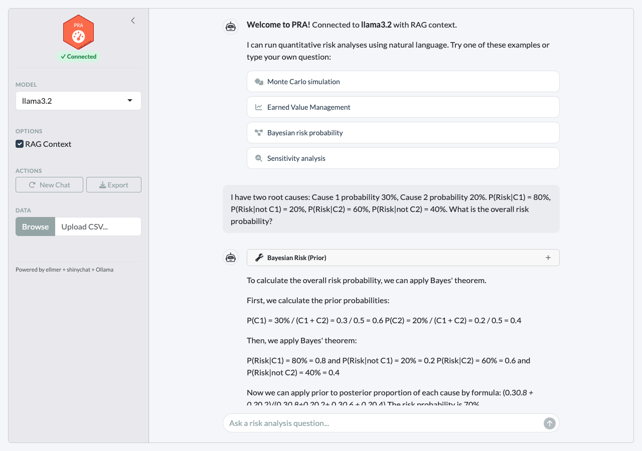 pra_chat()) - programmatic R chat object powered by ellmer where the LLM selects tools or answers from RAG -